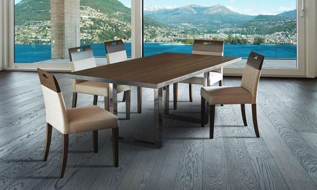 Riche et lisse, sans aucun vieillissement, le fini Chamois se distingue par son effet moiré; c'est le fini par excellence pour mettre en valeur les différentes nuances d'un même bois.
